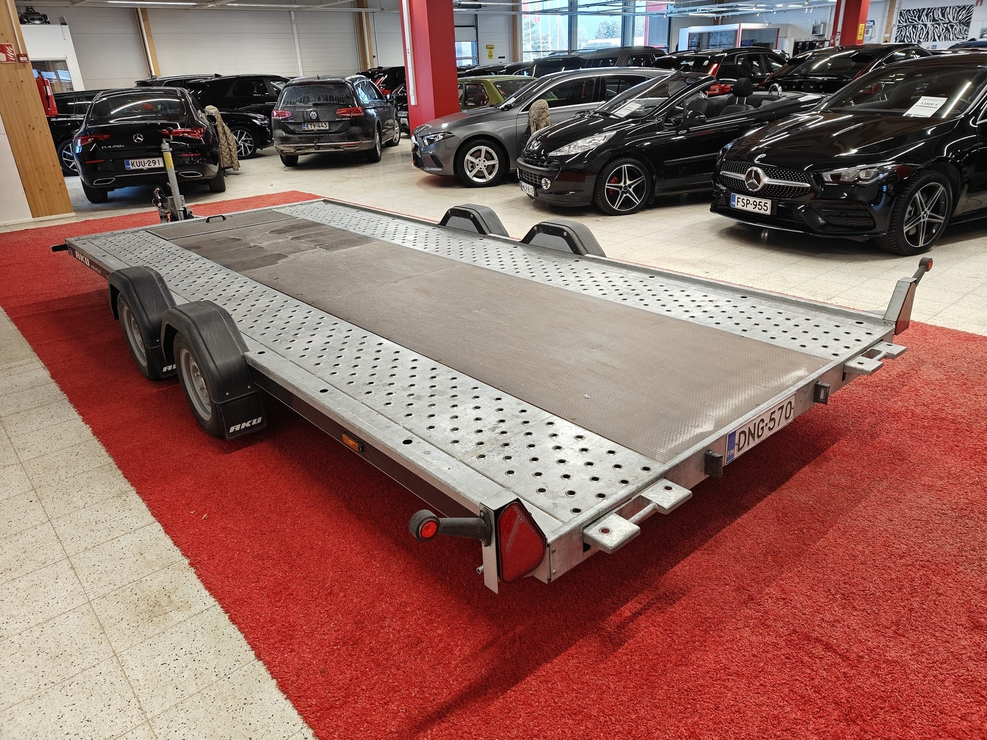 - Aku AP3500-DRB uudenveroinen kuumasinkitty autotraileri, jossa on täysin hitsattu runko, on tarkoitettu ensisijaisesti henkilöautojen ja suurten raskaiden kuormien kuljetukseen. Helppokäyttöiset ajosillat, joissa on loiva kulma, mahdollistavat matalan maavaran ajoneuvojen kuljetuksen.