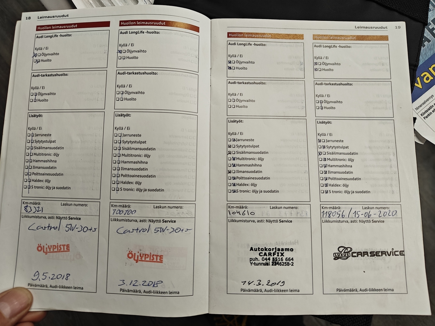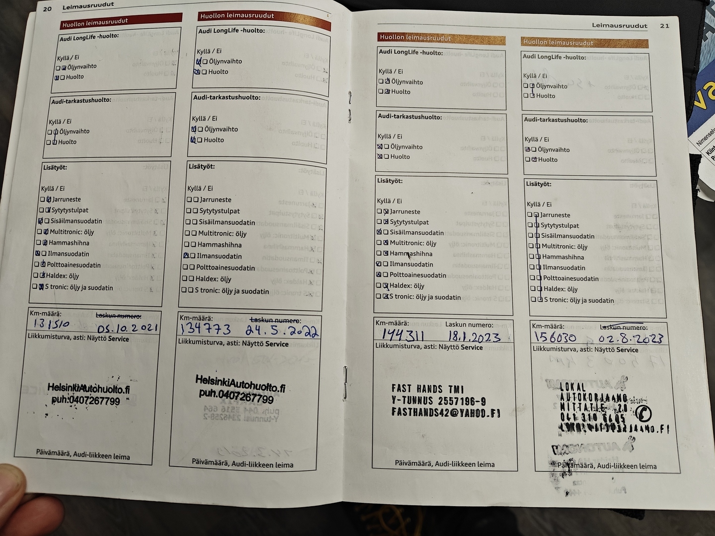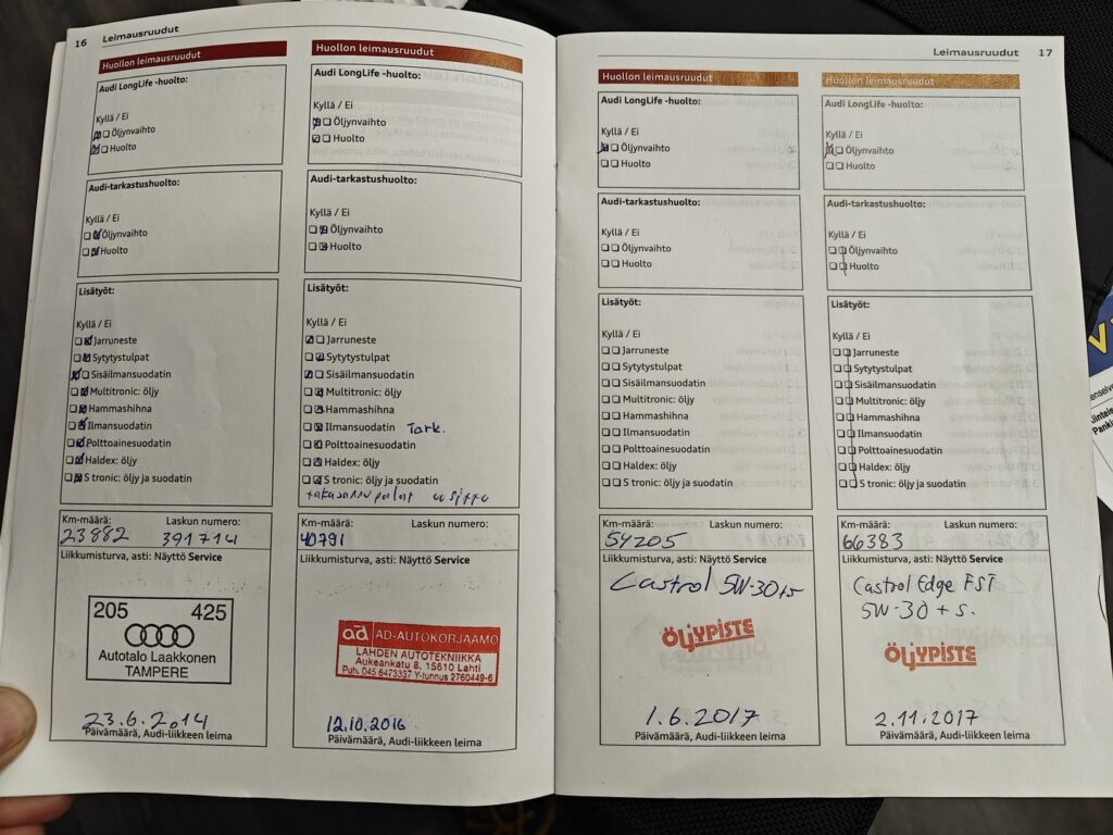 - Huoltokirja, säännöllisesti huollettu.