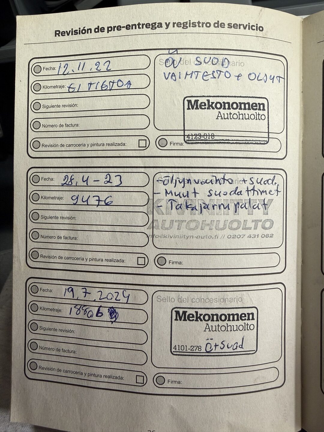 - Huoltokirja