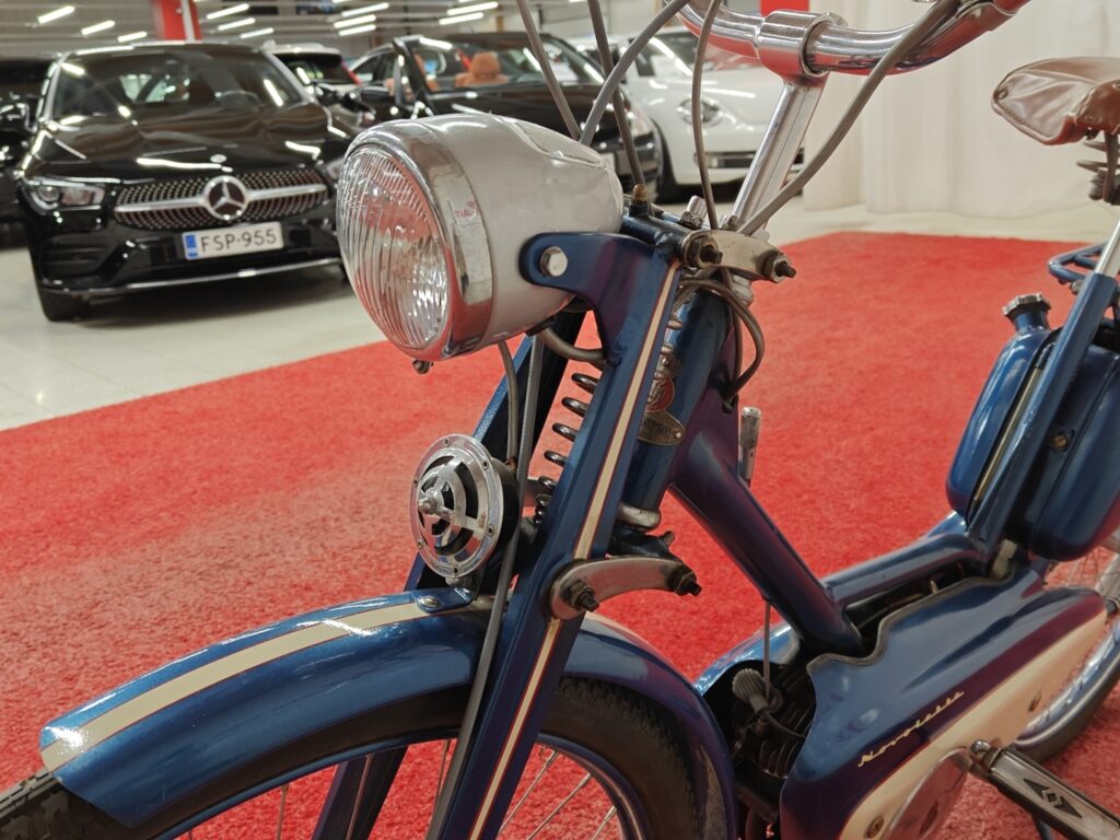 Husqvarna Novelette apumoottoripolkupyörä mikä on entisöity siistiksi alkuperäistä vastaavaan kuntoon.
