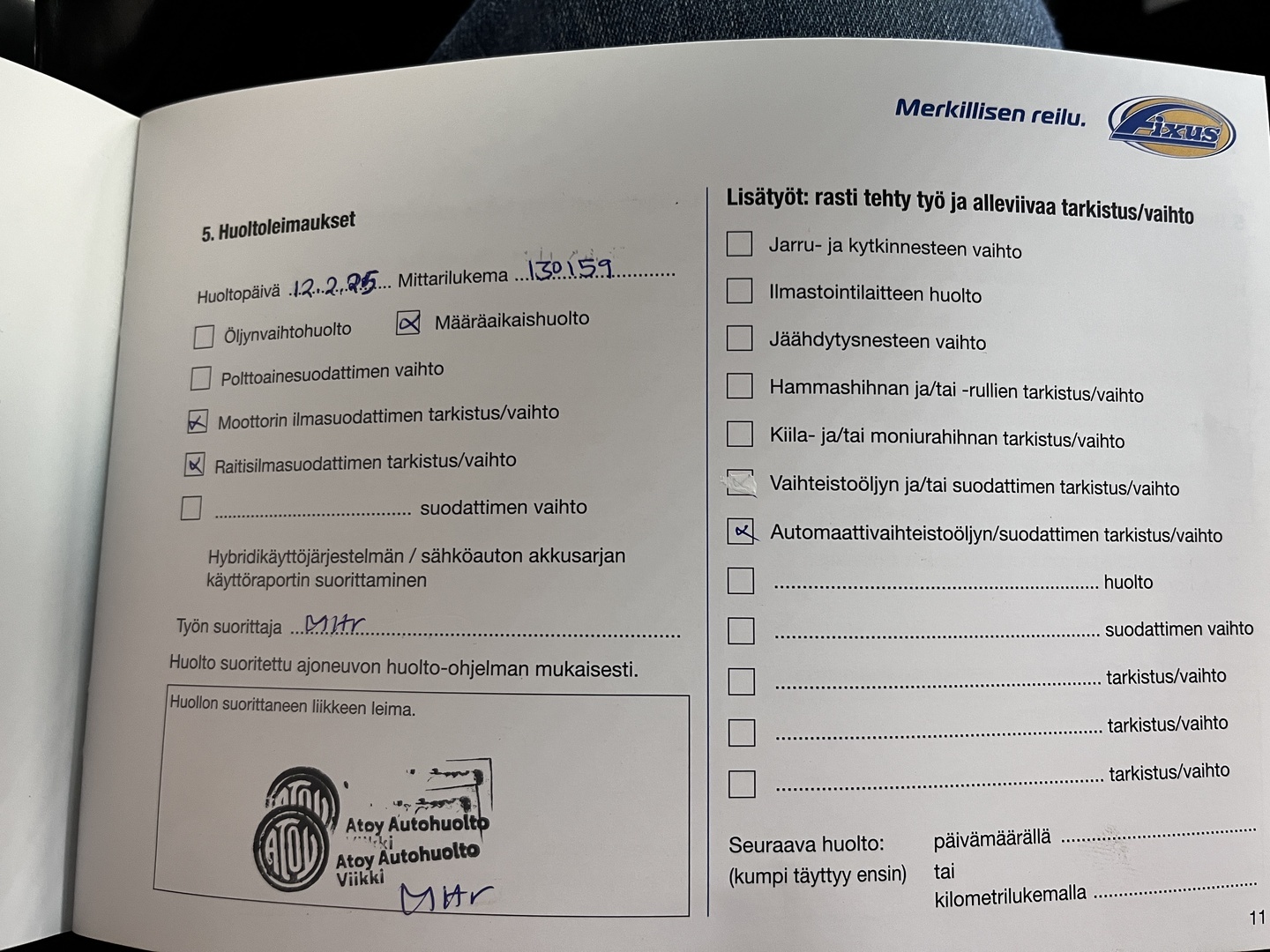 - Viimeisin huolto tehty 130 tkm 02/2025