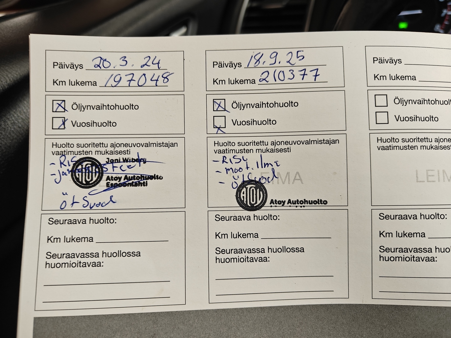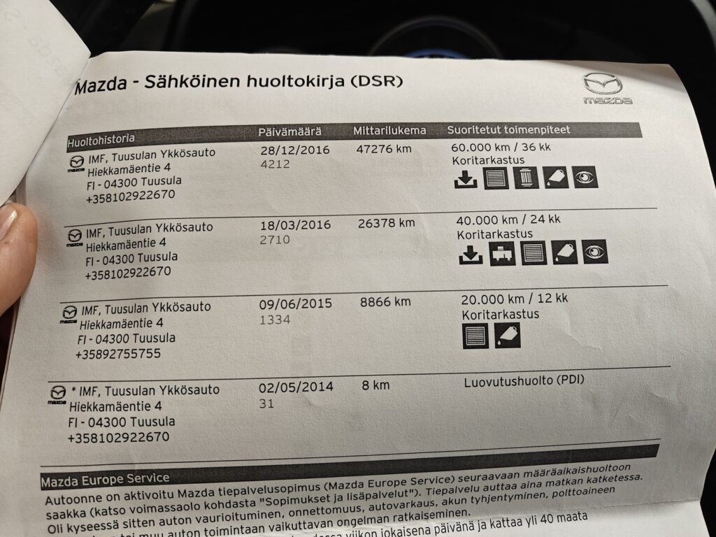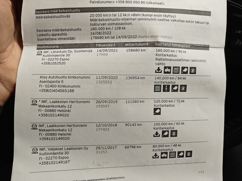 - Viimeisin huolto tehty 210 tkm 9/2025