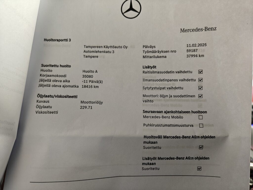 - Hyvä merkkiliikkeen huoltohistoria