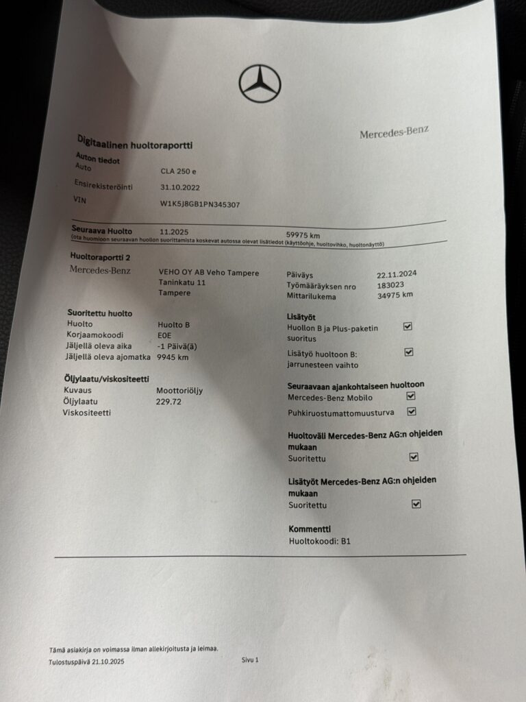 - Viimeisin huolto tehty 55 tkm 11/2025