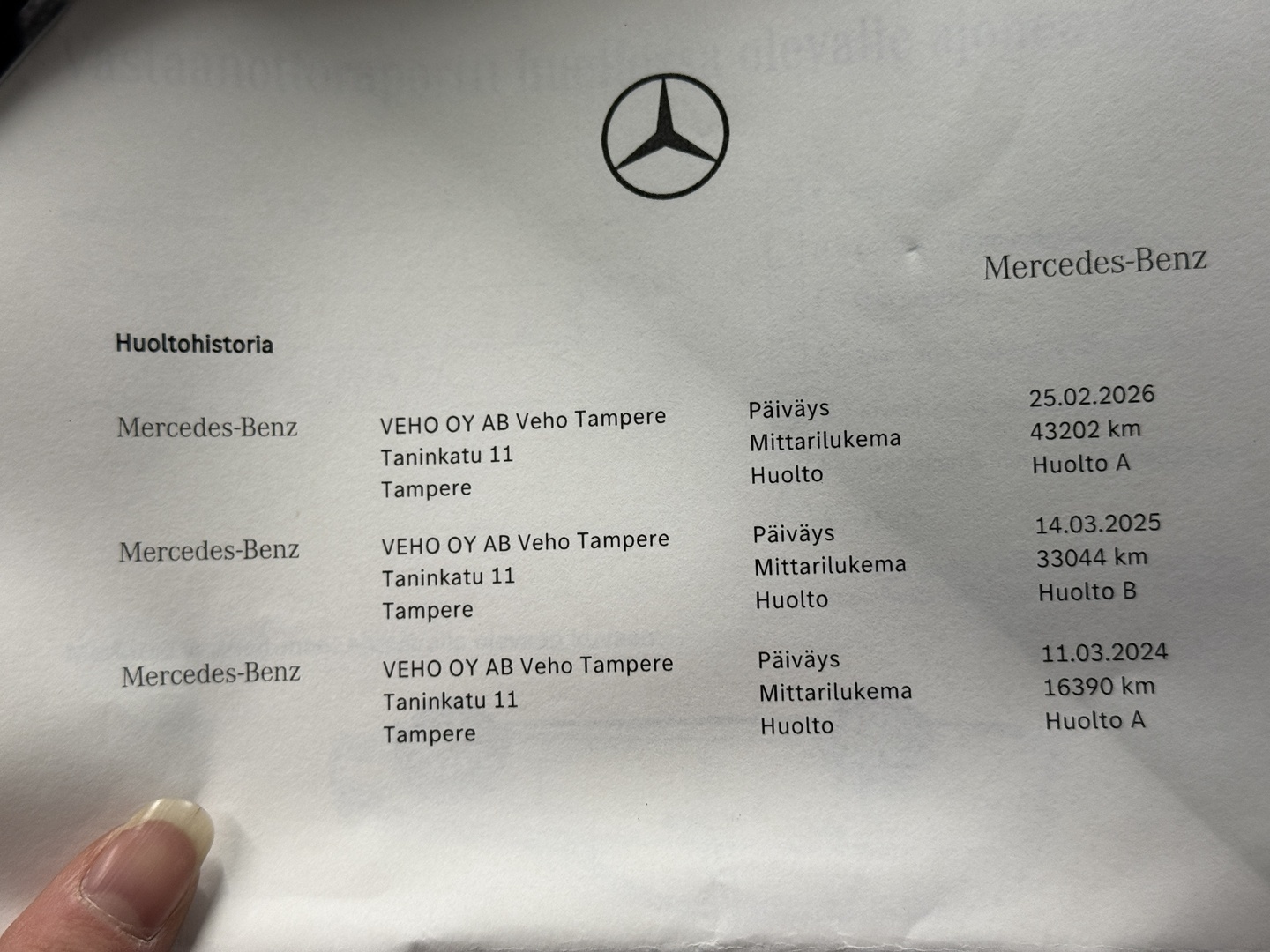 - Viimeisin huolto tehty 02/2026