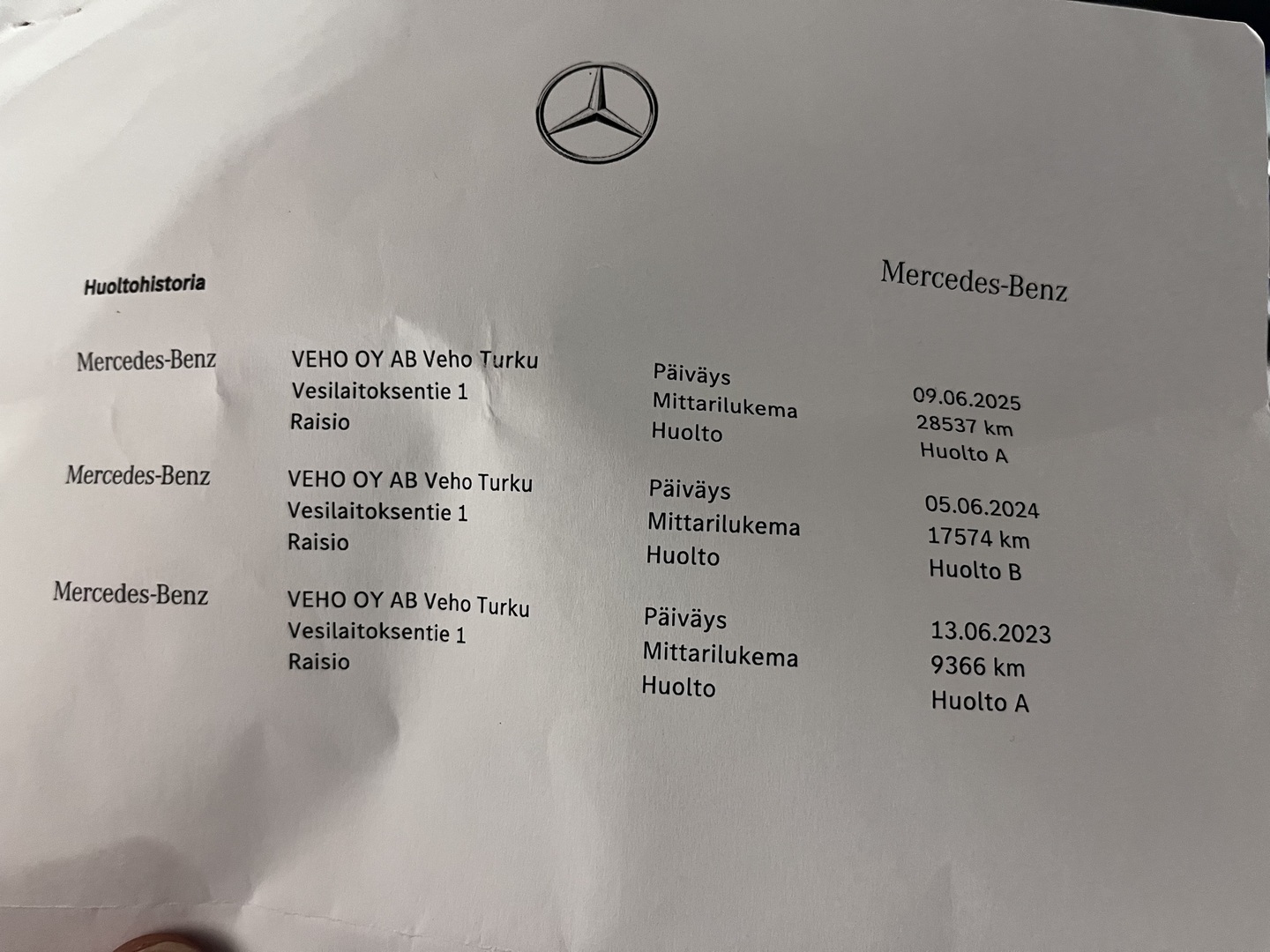 - Hyvä merkkiliikkeen huoltohistoria