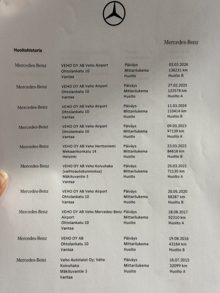 - Viimeisin huolto tehty 136 tkm 3/2026