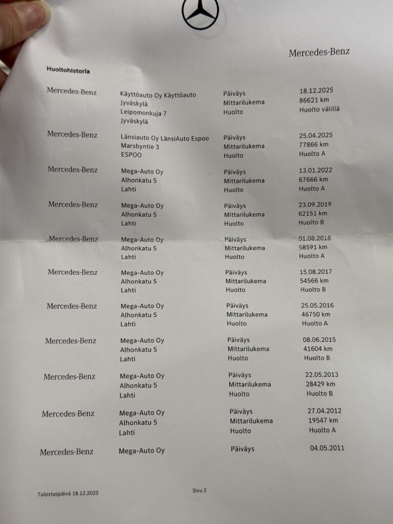 - Viimeisin huolto tehty 86 tkm 12/2025