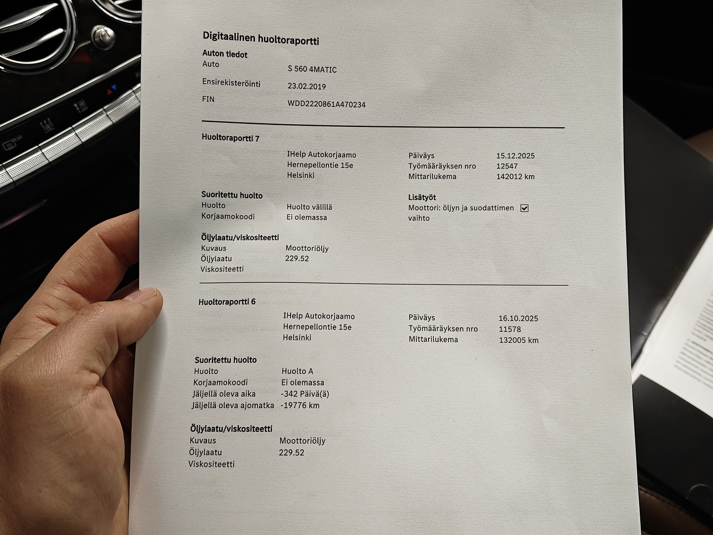 - Viimeisin huolto tehty 142 tkm 12/2025