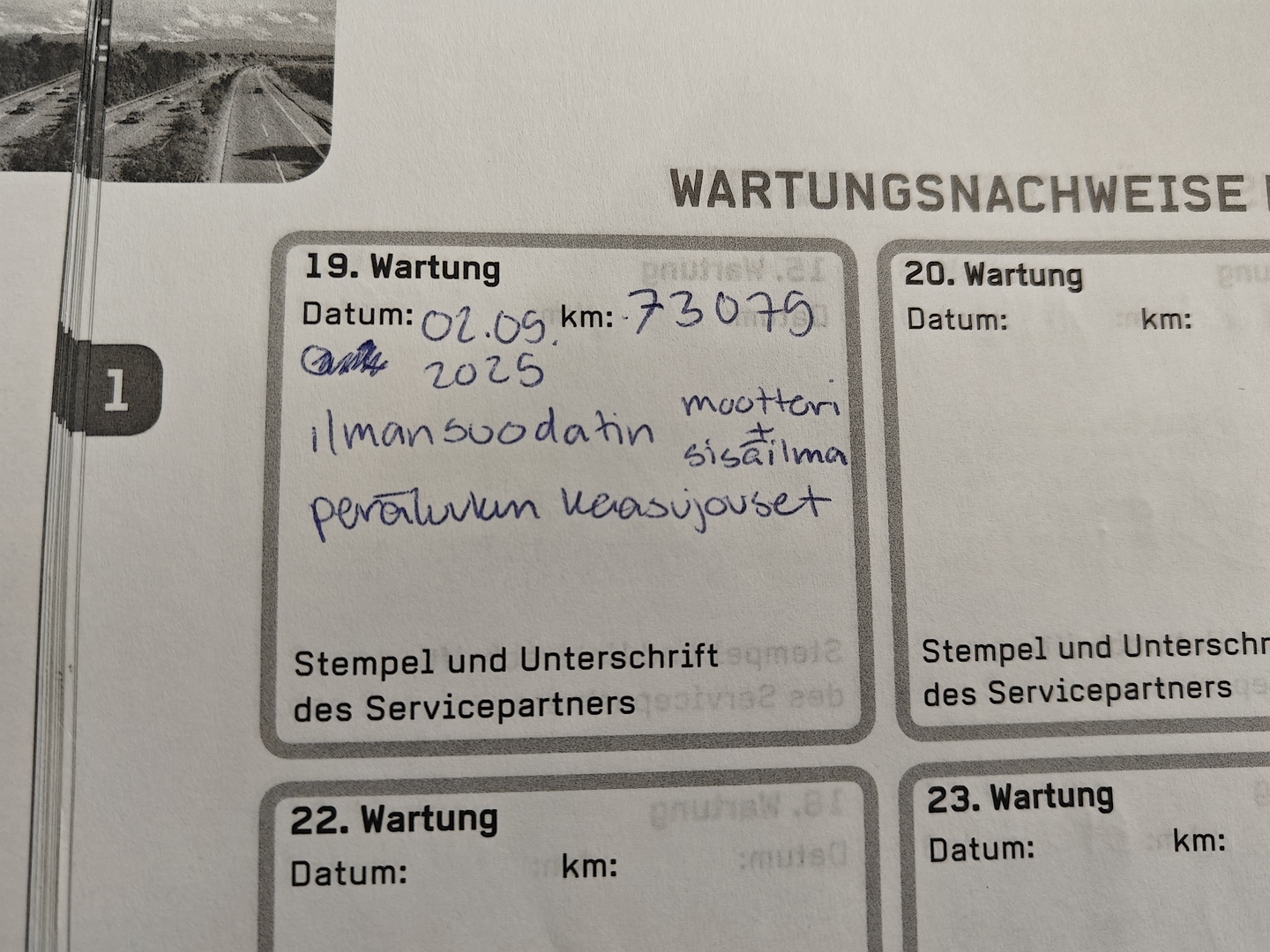 - Viimeisin huolto tehty 73 tkm 9/2025