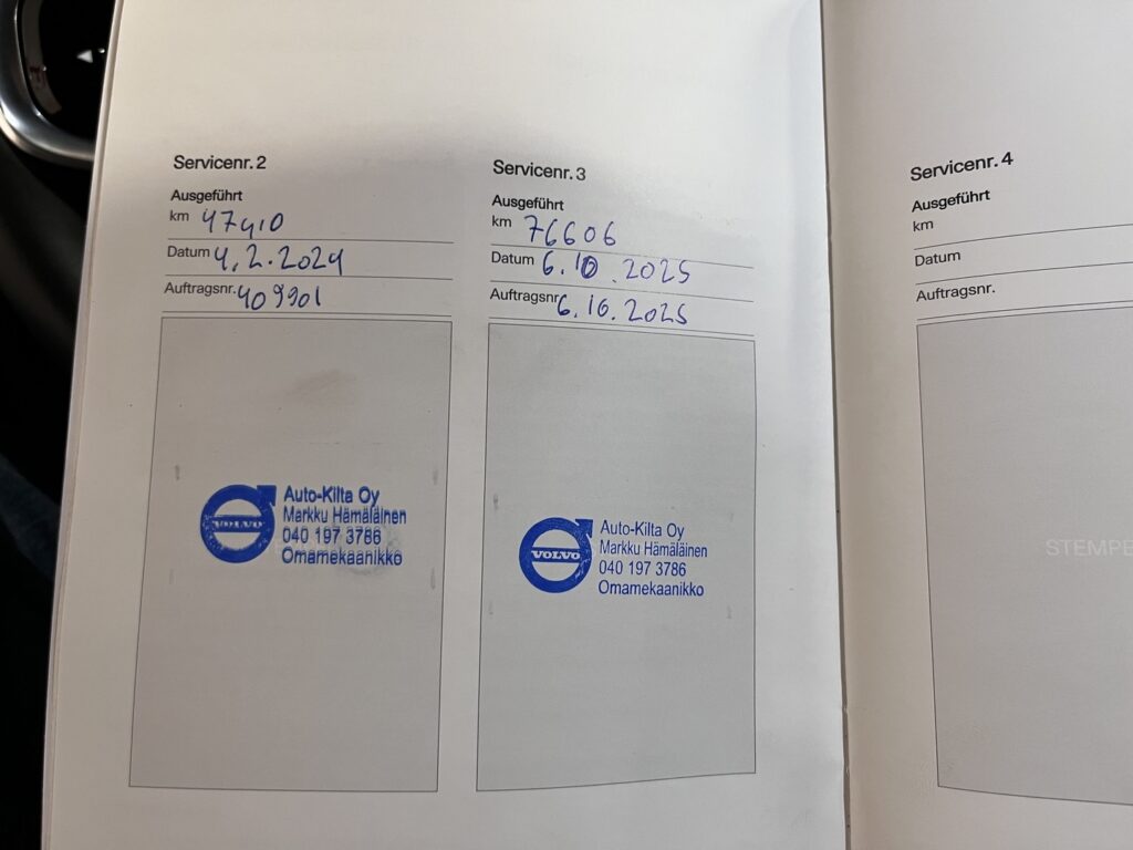 - Hyvä merkkiliikkeen huoltokirja