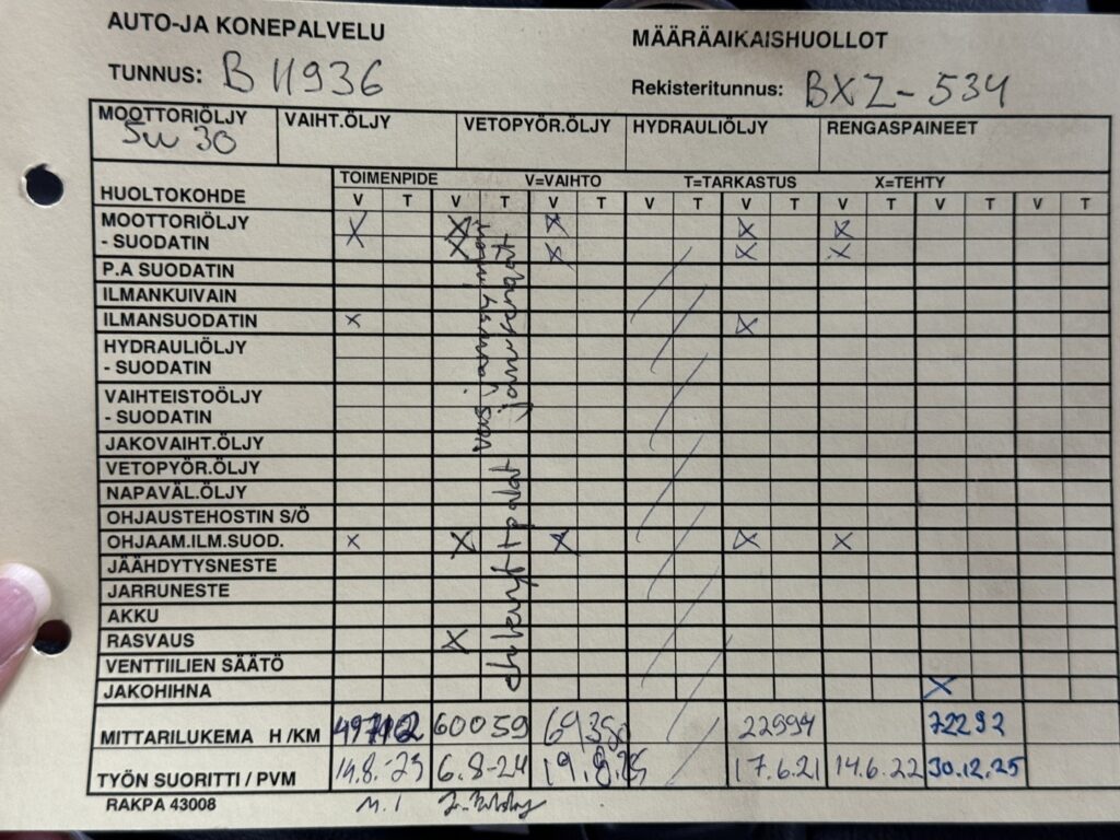 - Viimeisin huolto tehty 60tkm 8/2024