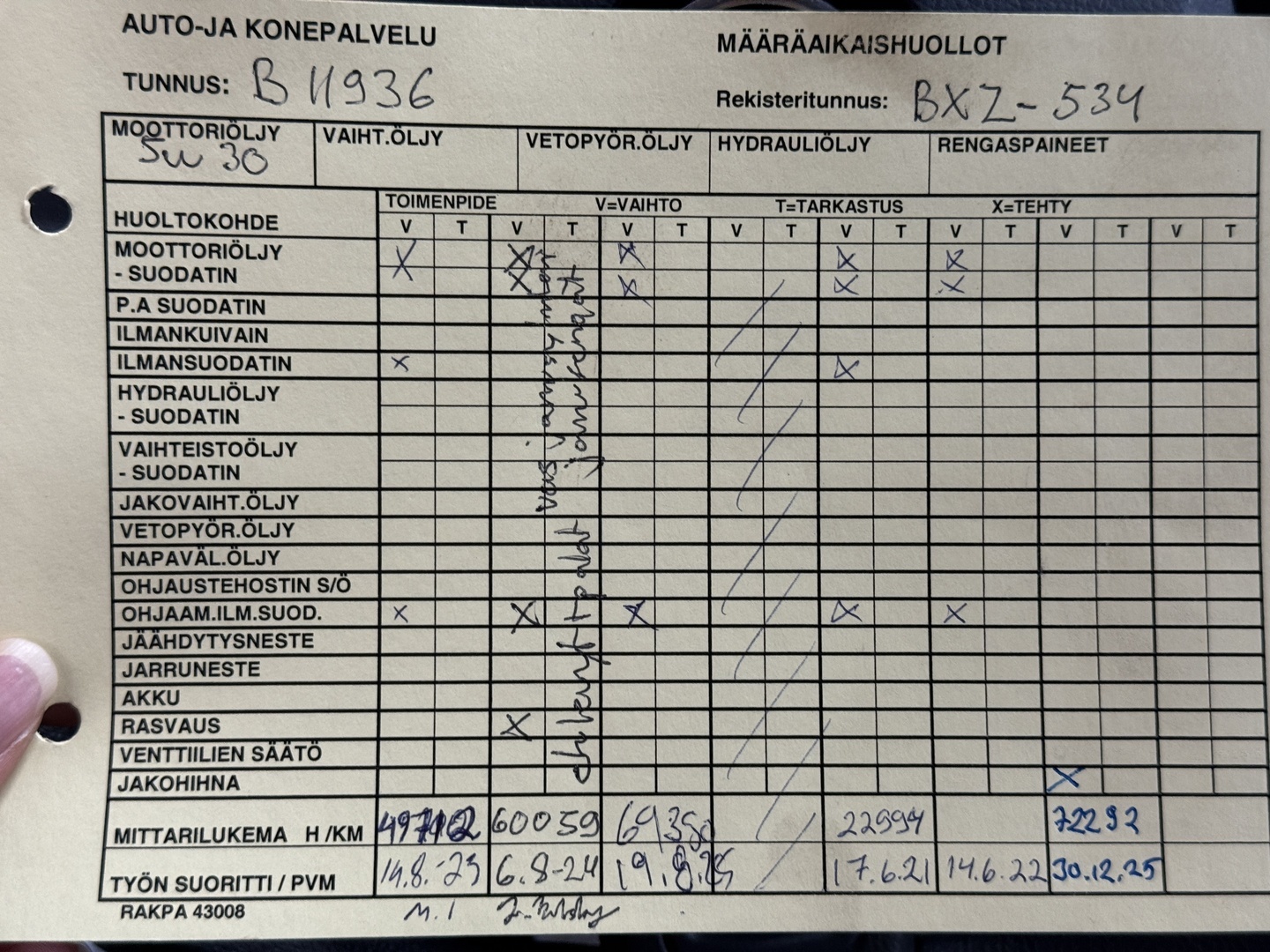- Huoltohistoria