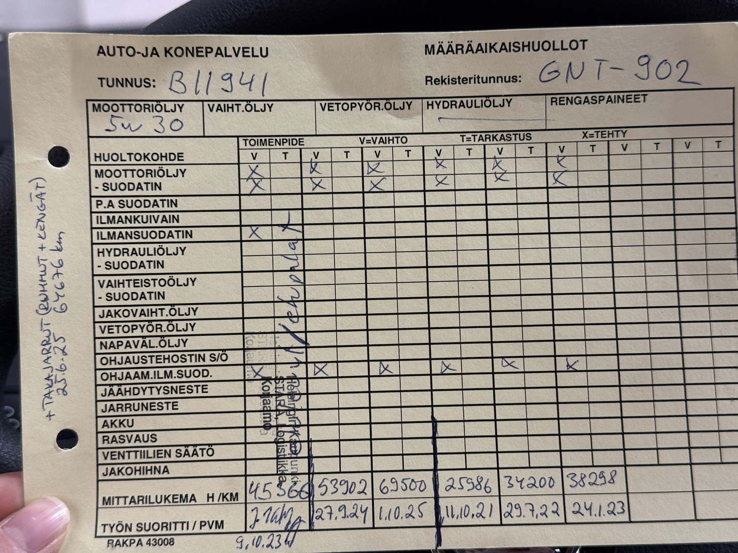 - Viimeisin huolto tehty 69 tkm 10/2025