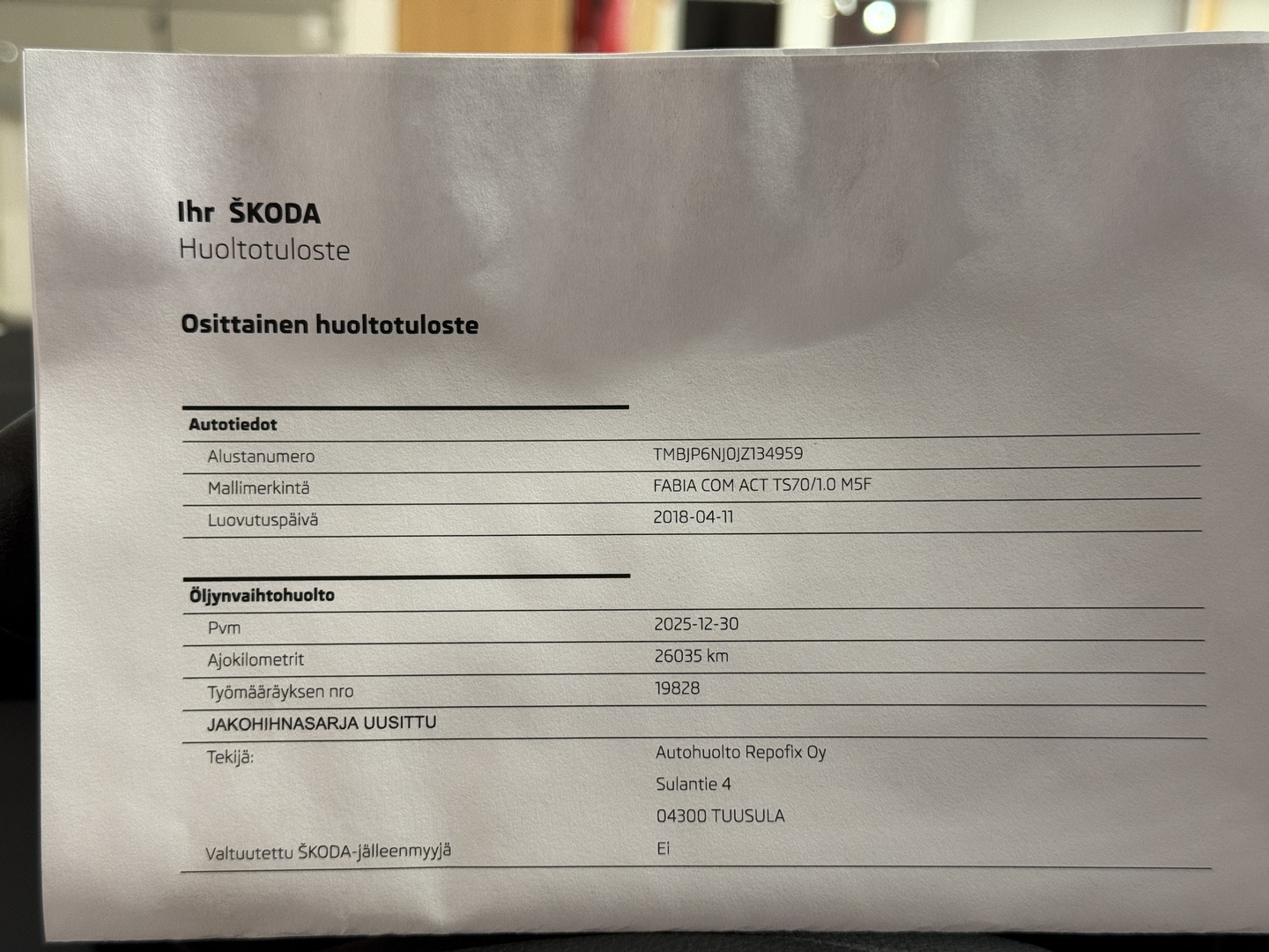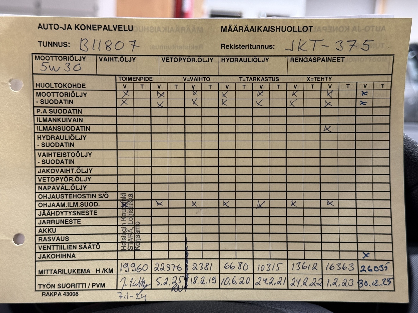 - Viimeisin huolto tehty 26 tkm 12/2025.