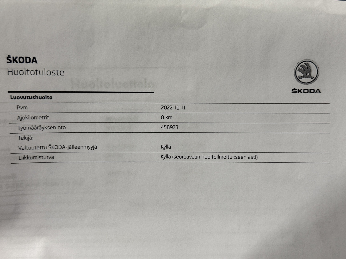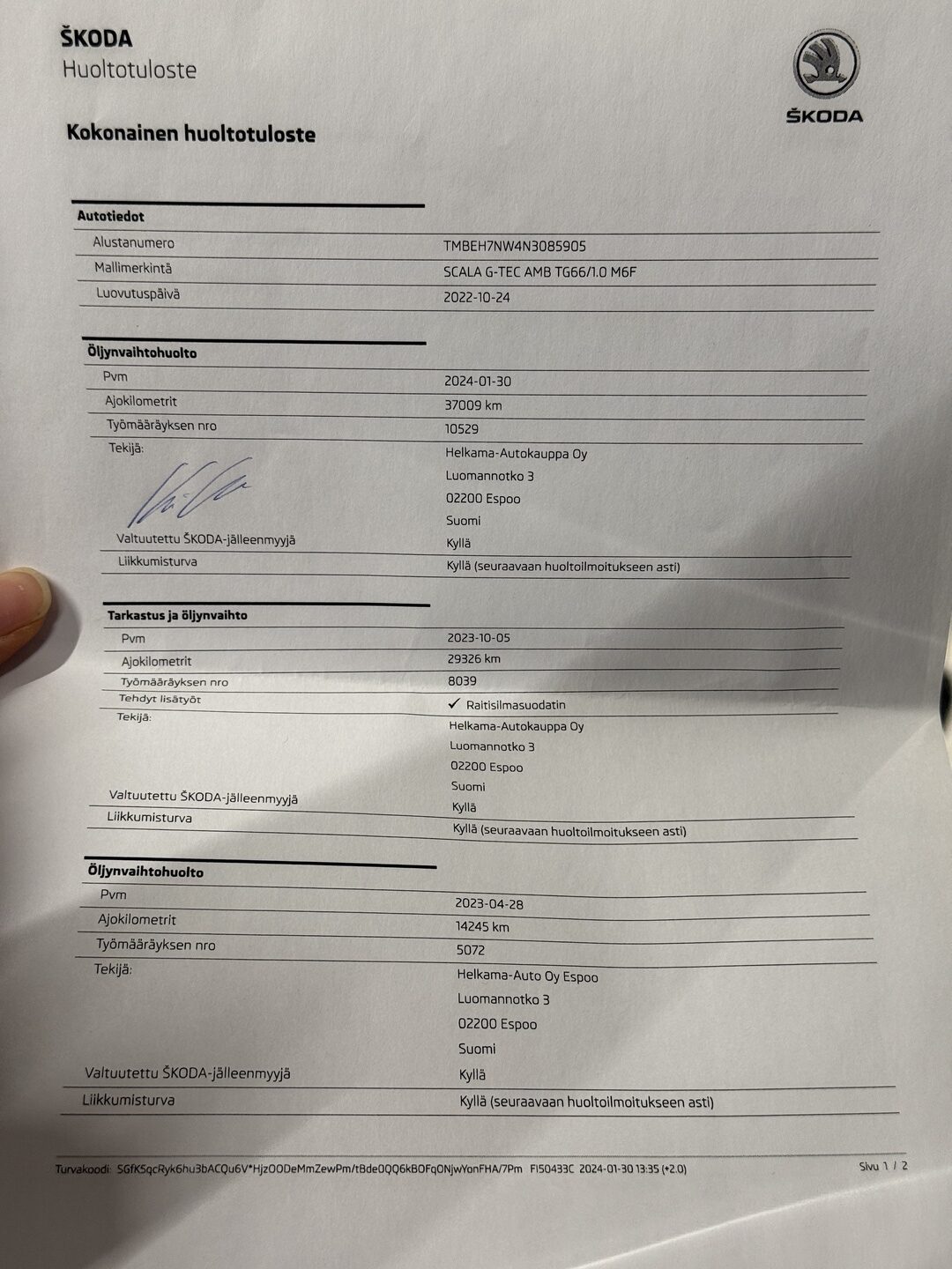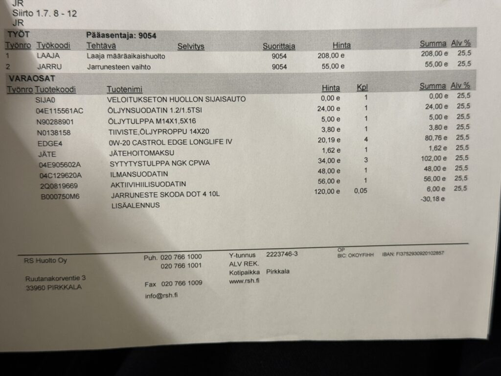 - Sähköinen huoltohistoria