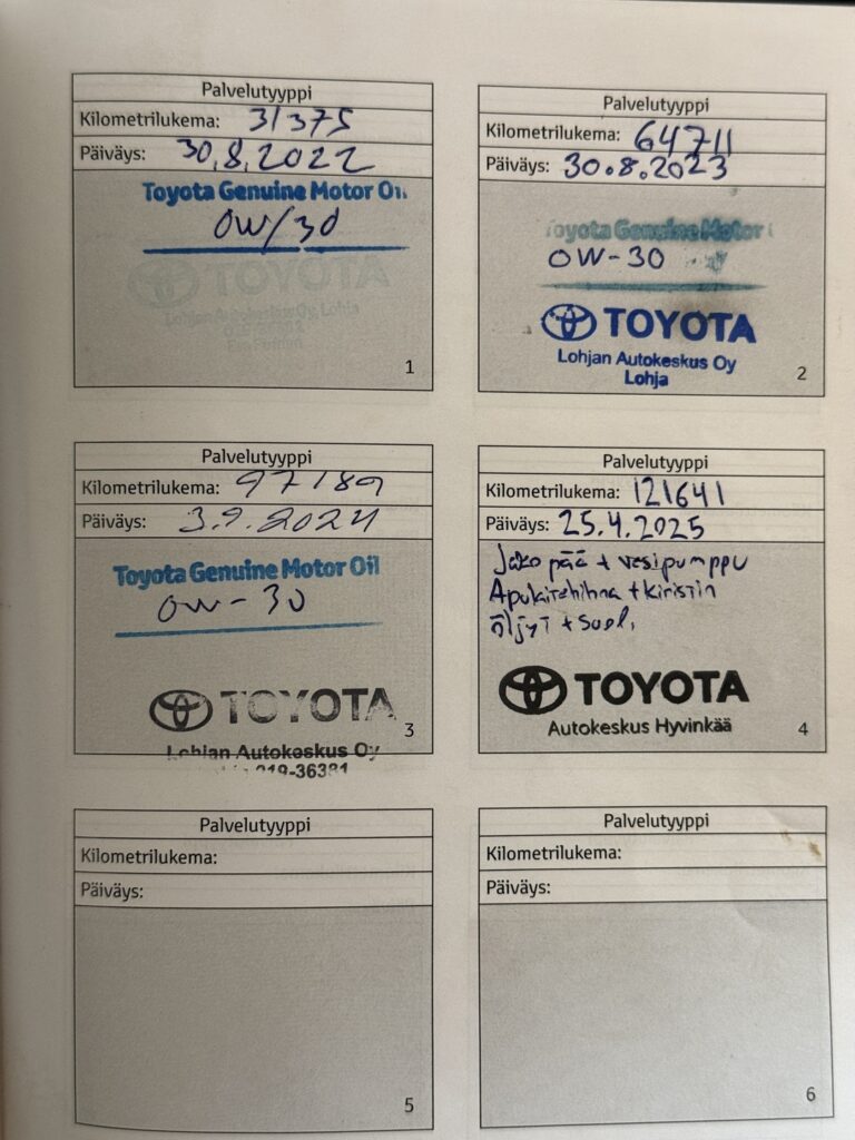 - Viimeisin huolto tehty 121 tkm 4/2025