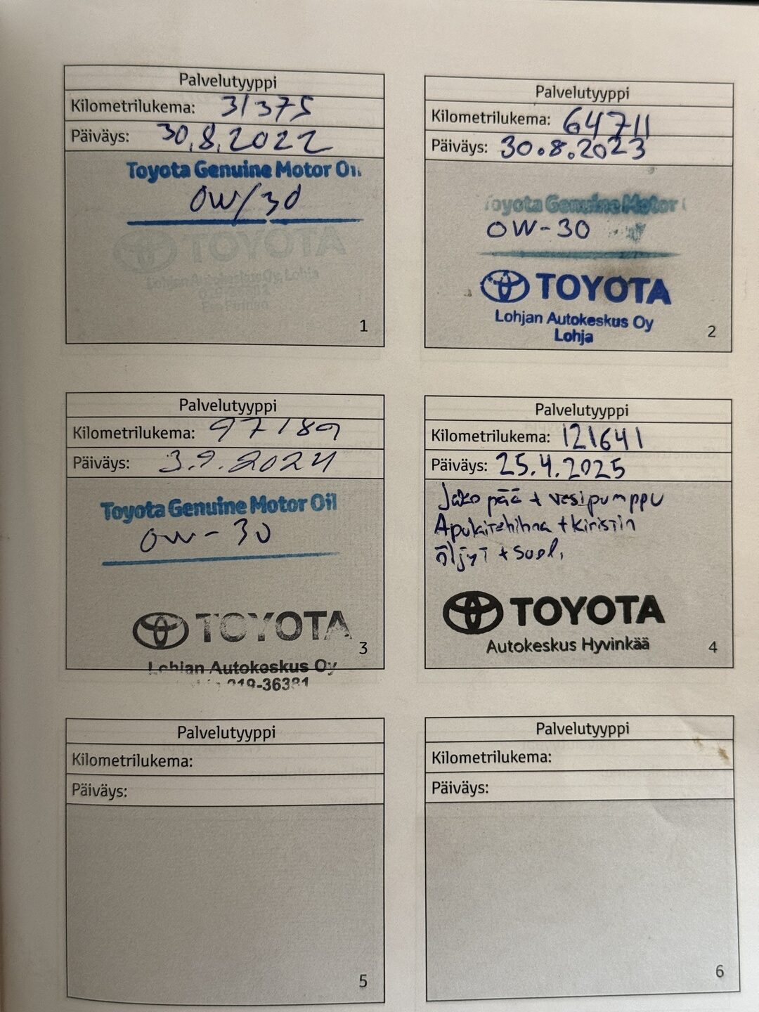 - Hyvä merkkiliikkeen huoltokirja