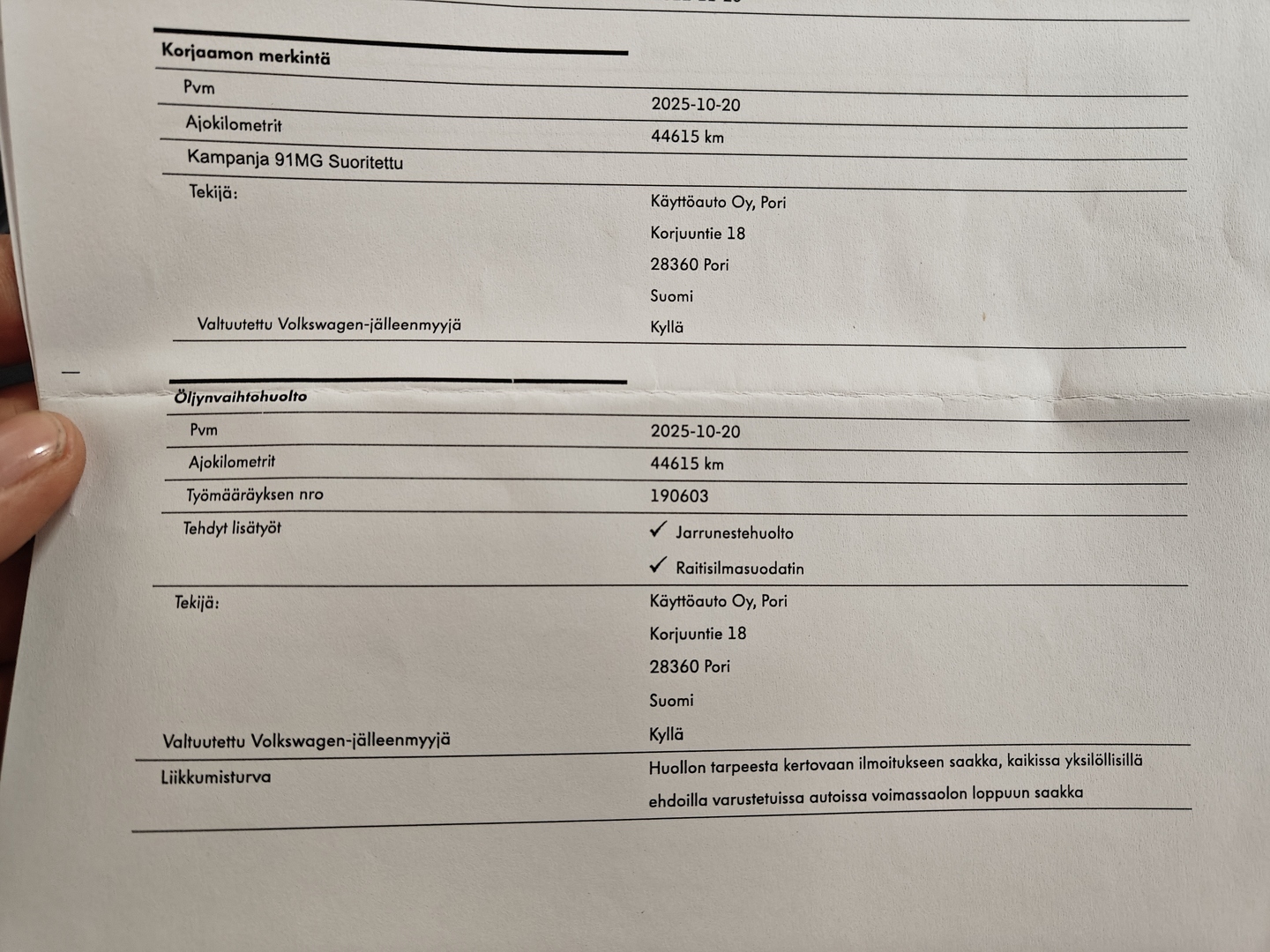 - Viimeisin huolto tehty 44 tkm 10/2025