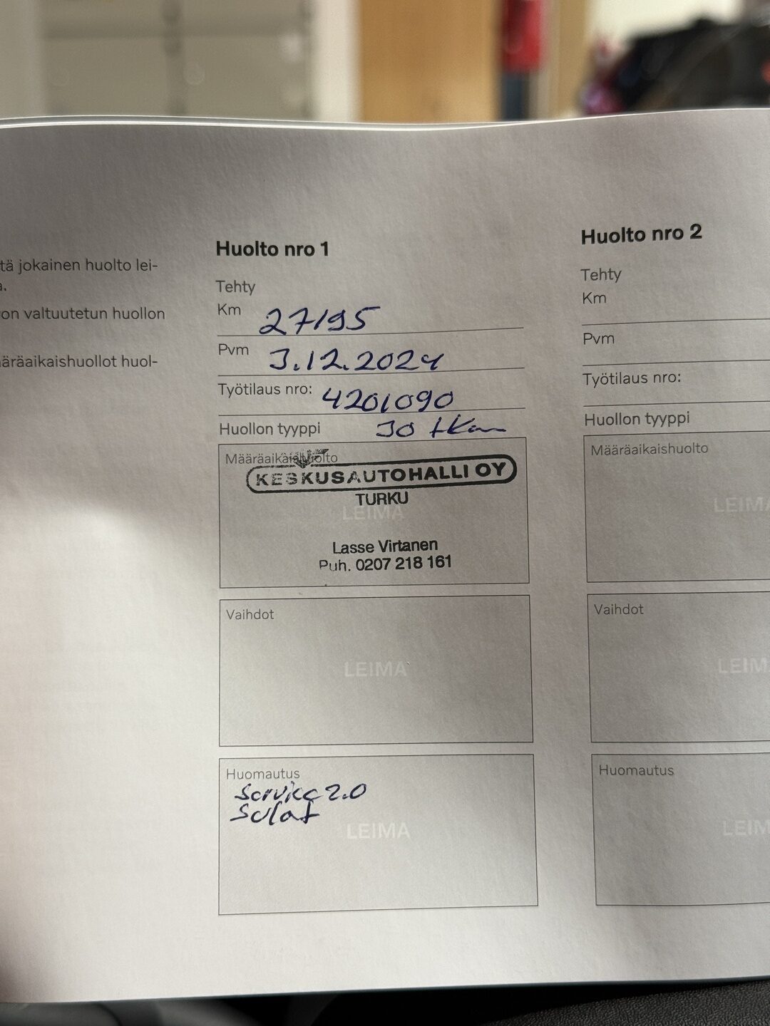 - Hyvä merkkiliikkeen huoltokirja