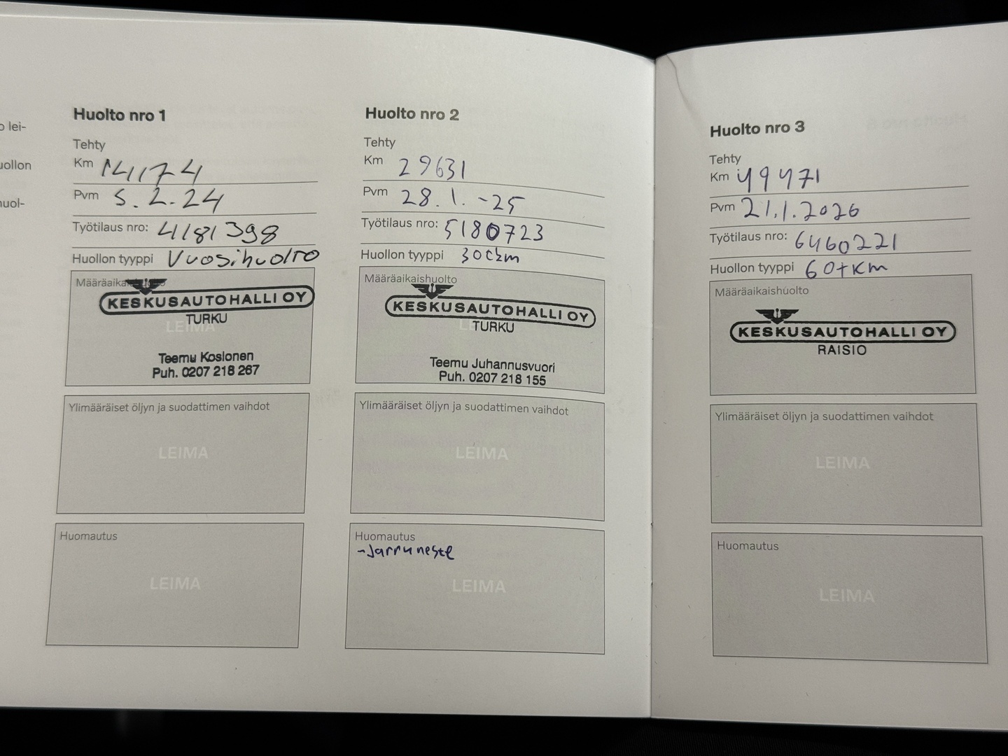 - Viimeisin huolto tehty 40 tkm 11/2024