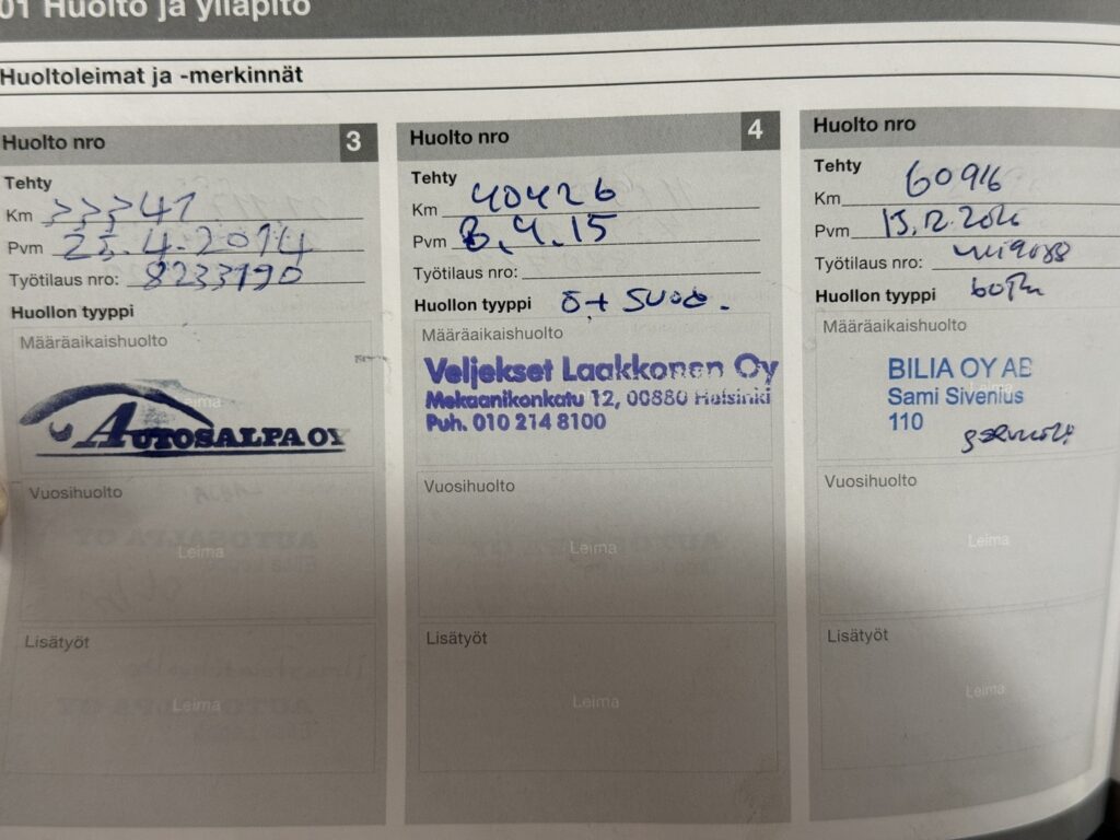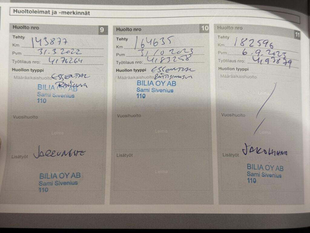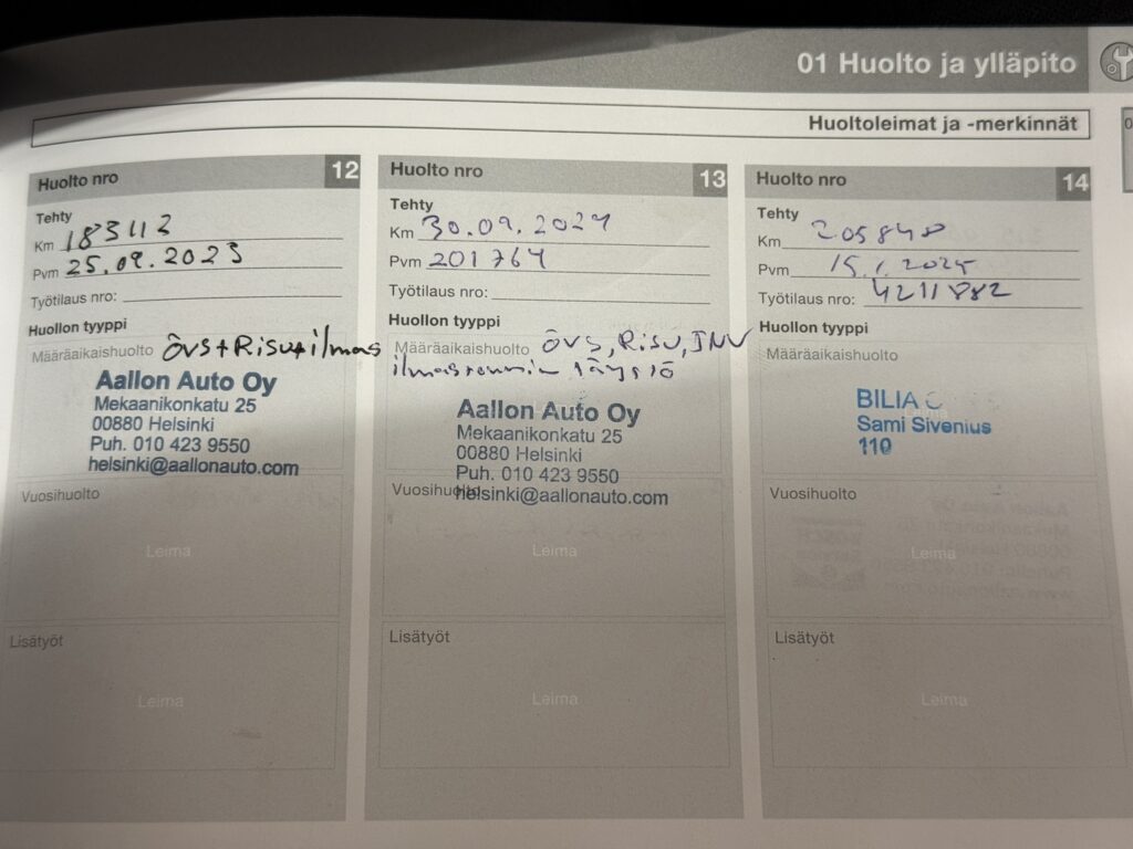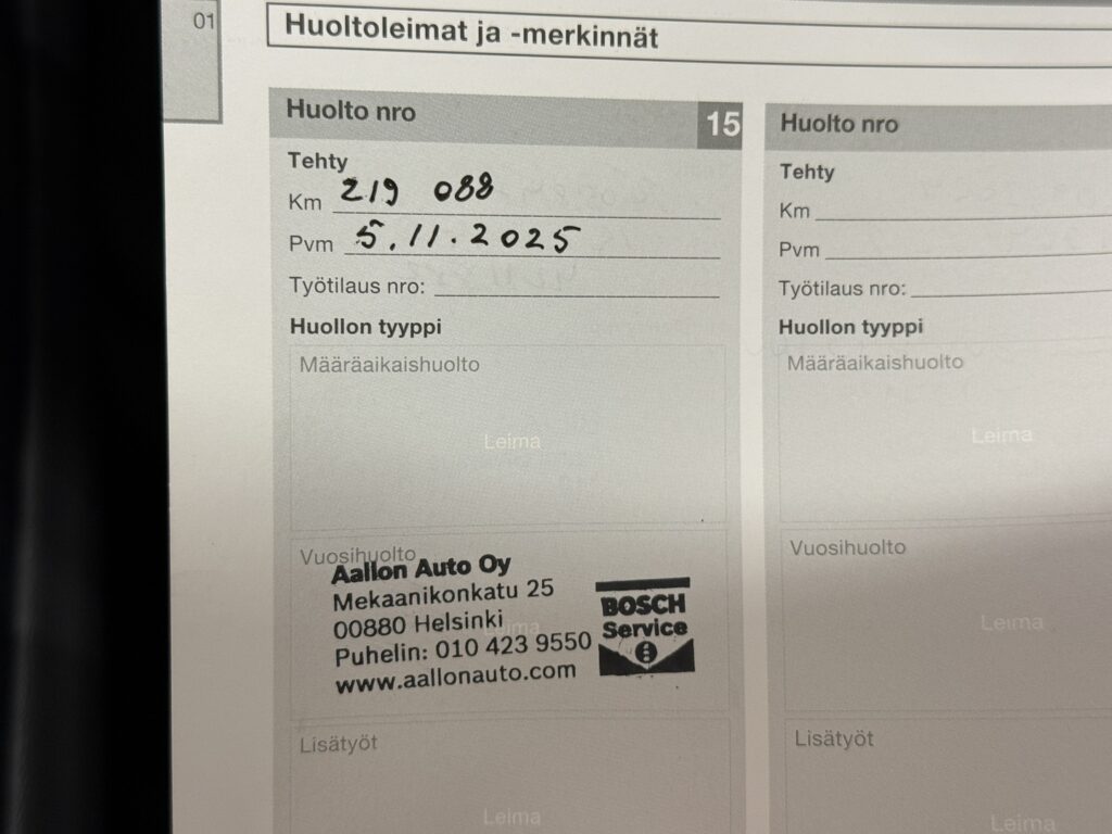 - Viimeisin huolto tehty 219 tkm 11/2025.