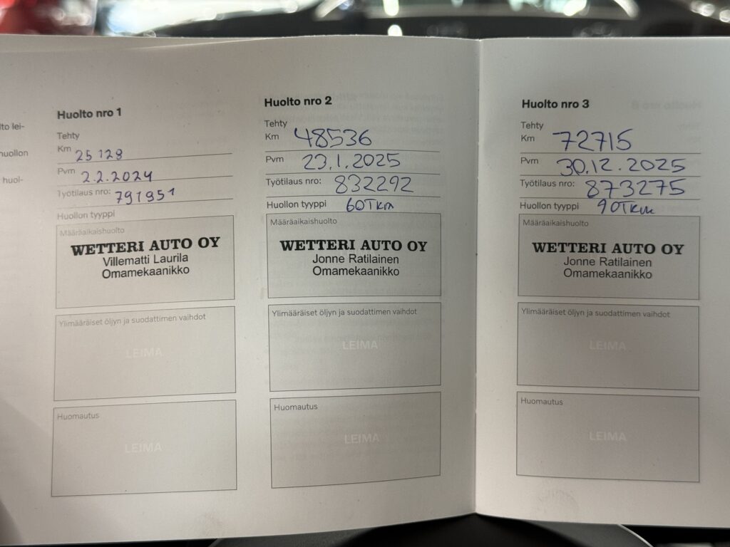 - Viimeisin huolto tehty 72 tkm 12/2025