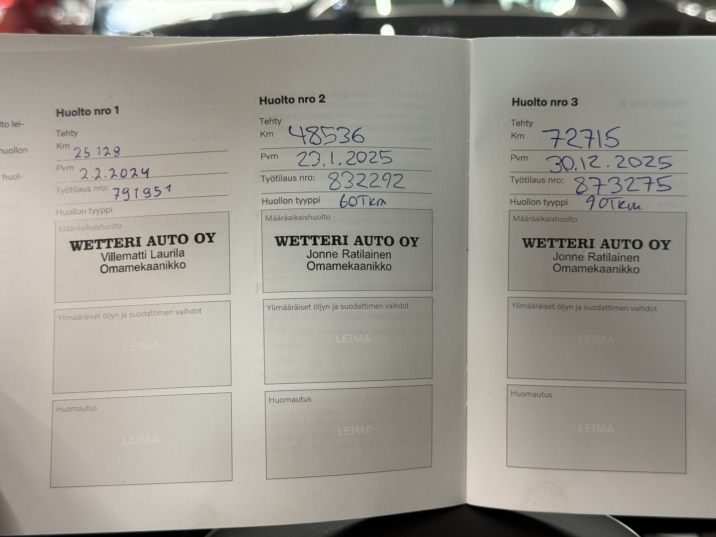 - Hyvä merkkiliikkeen huoltokirja
