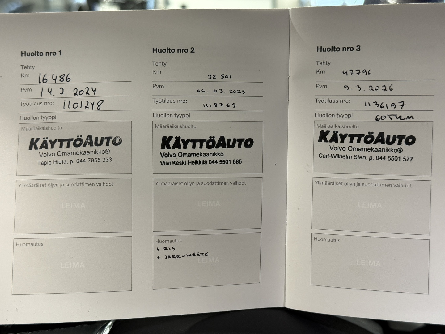- Viimeisin huolto tehty 47796 tkm 3/2026
