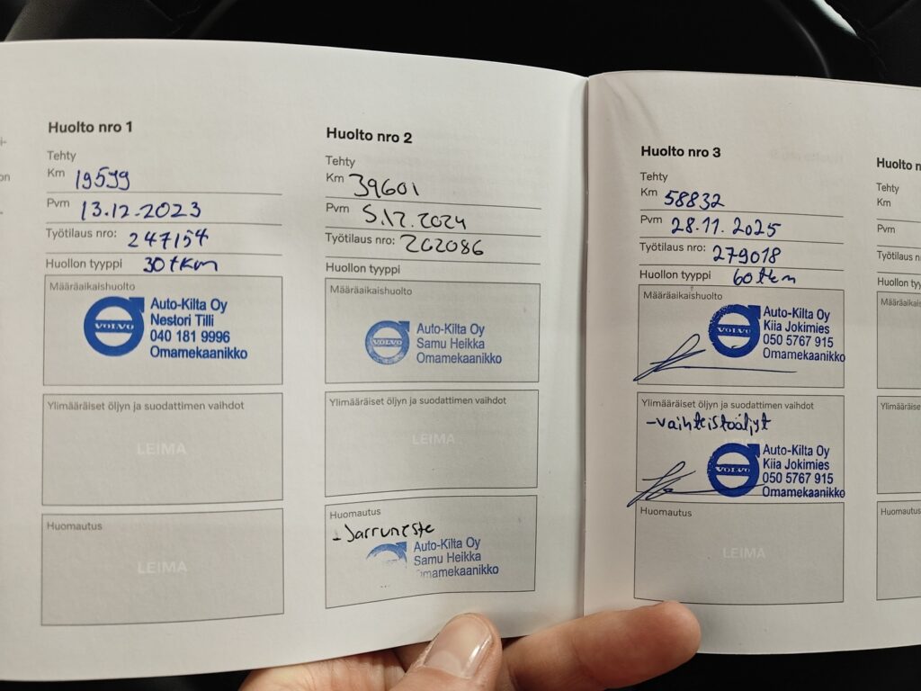 - Hyvä merkkiliikkeen huoltokirja