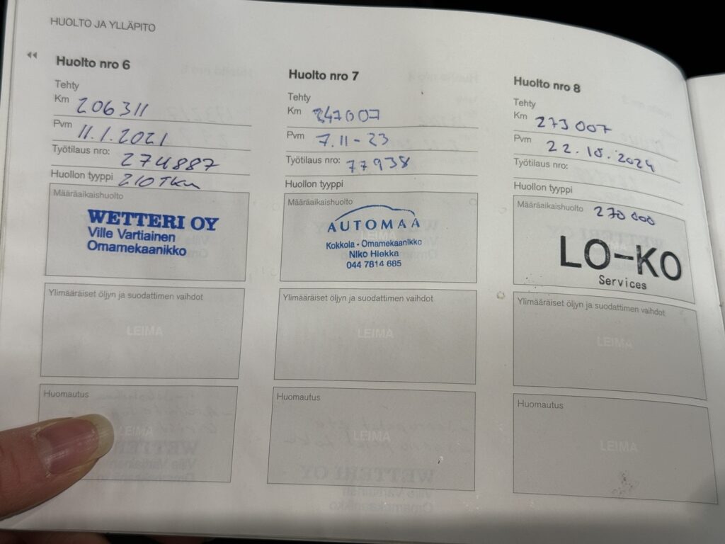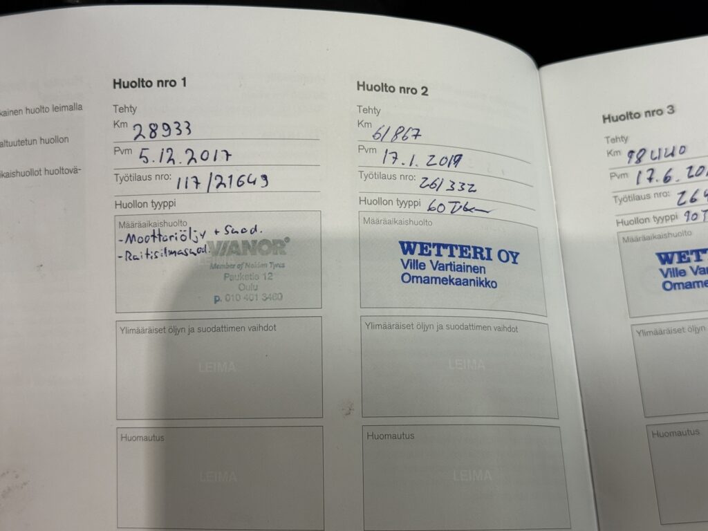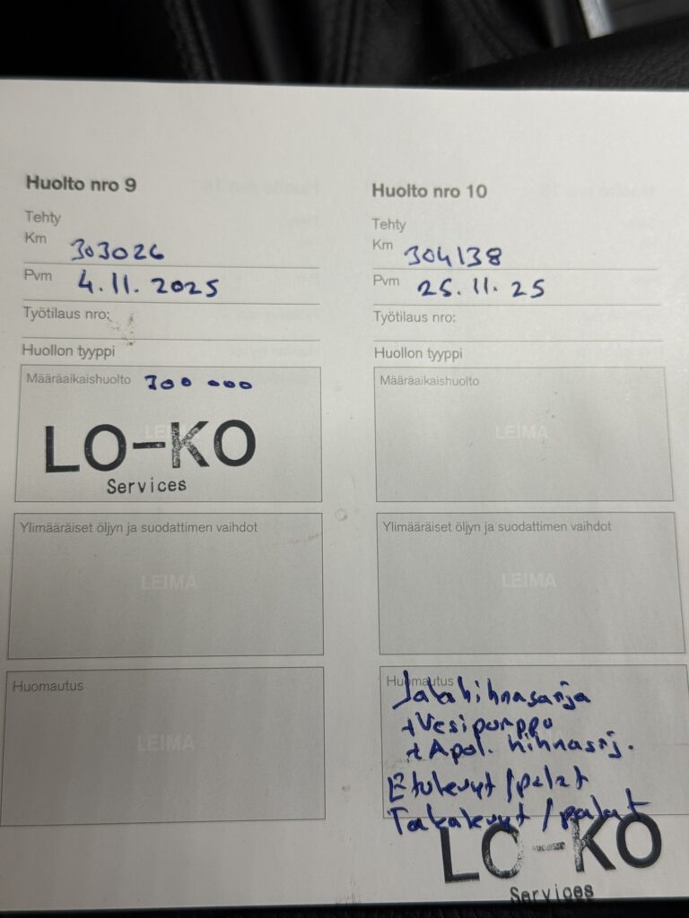 - Viimeisin huolto tehty 303 tkm 11/2025