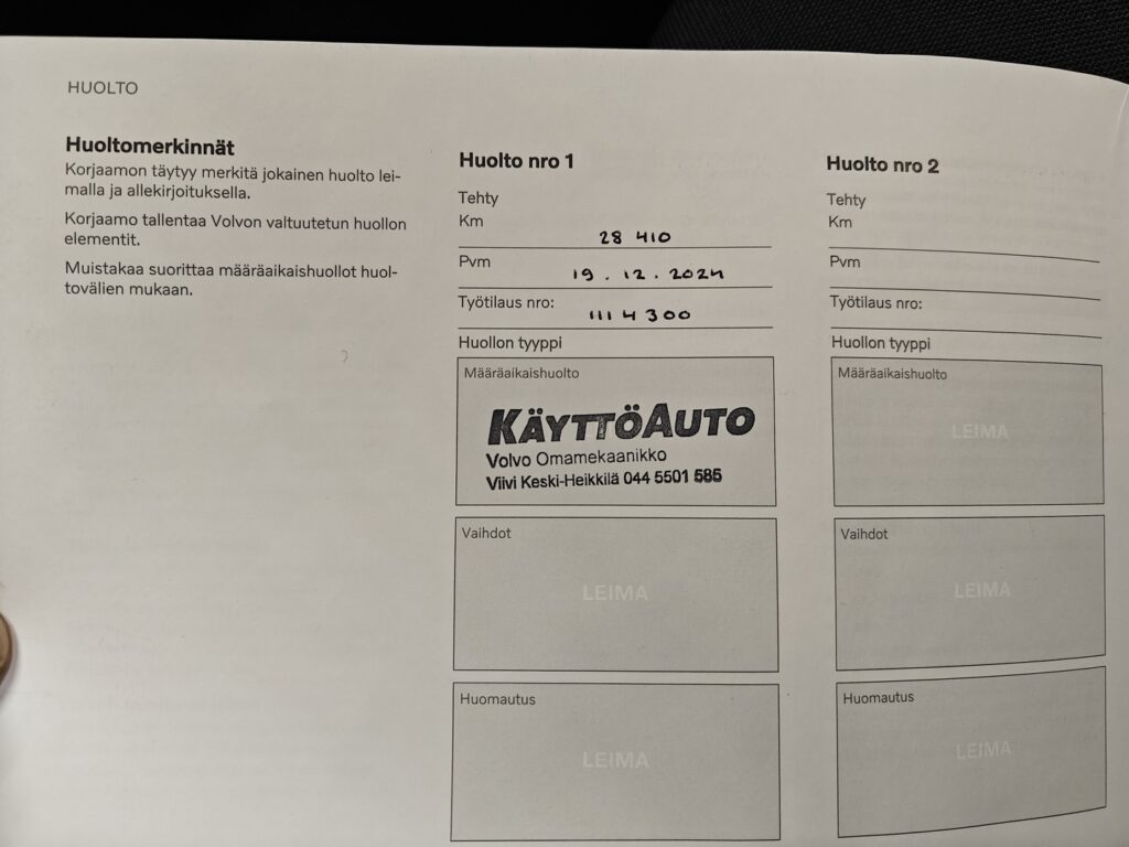 - Hyvä merkkiliikkeen huoltokirja