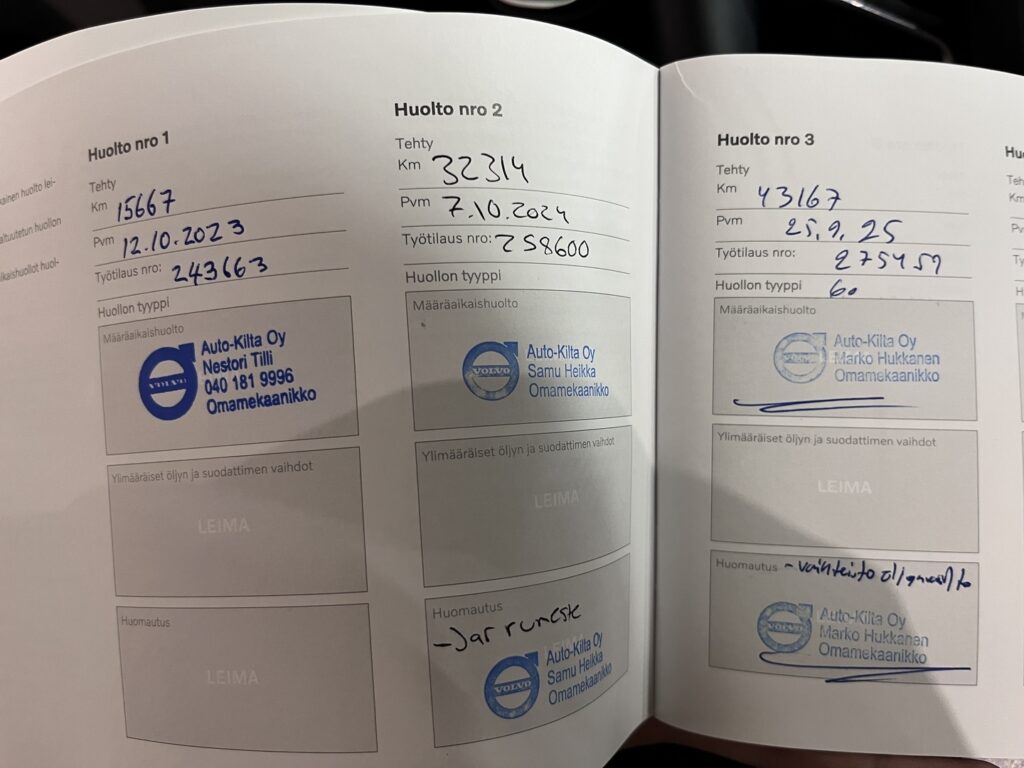 - Hyvä merkkiliikkeen huoltokirja