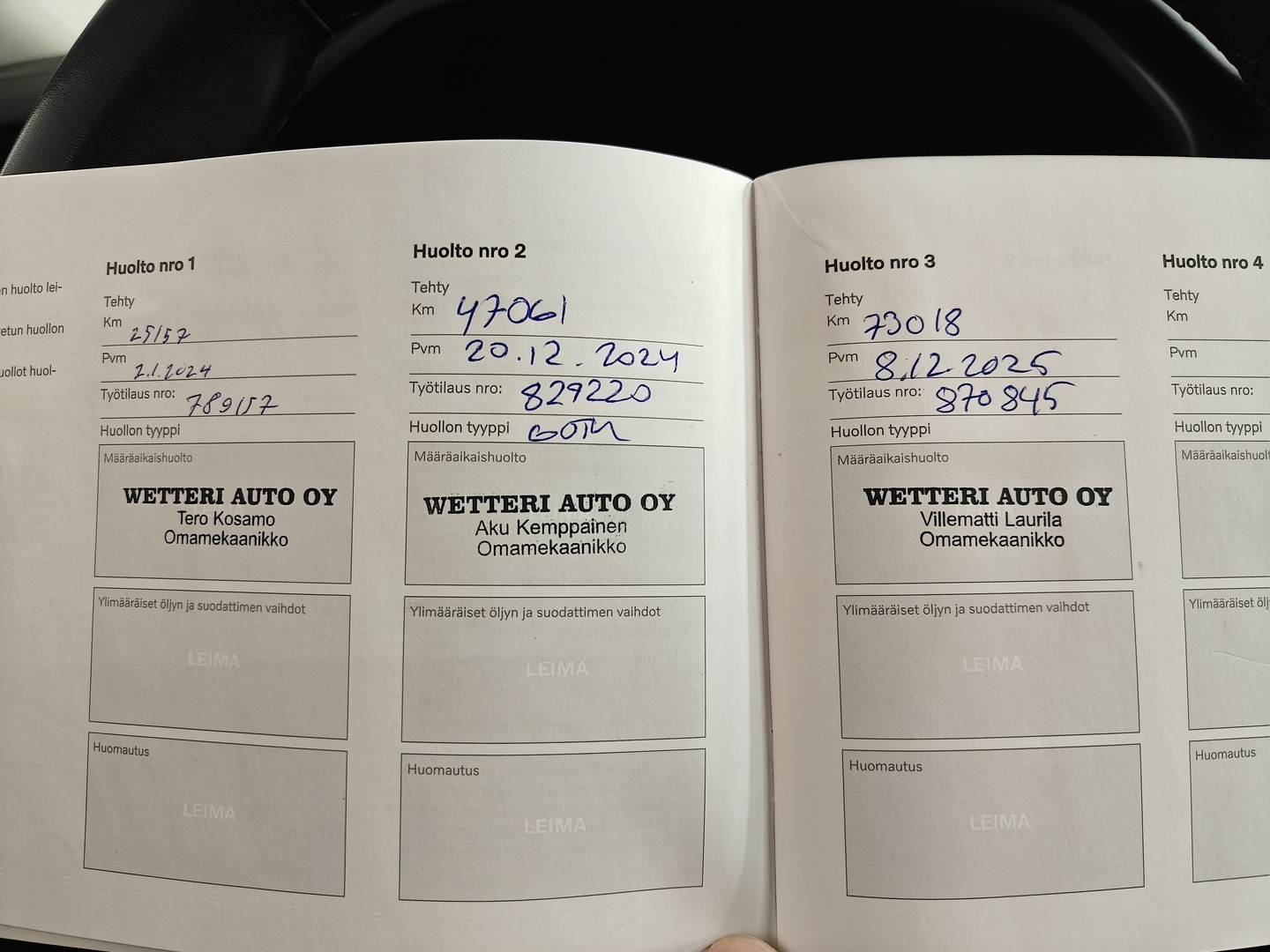 - Viimeisin huolto tehty 73 tkm 12/2025