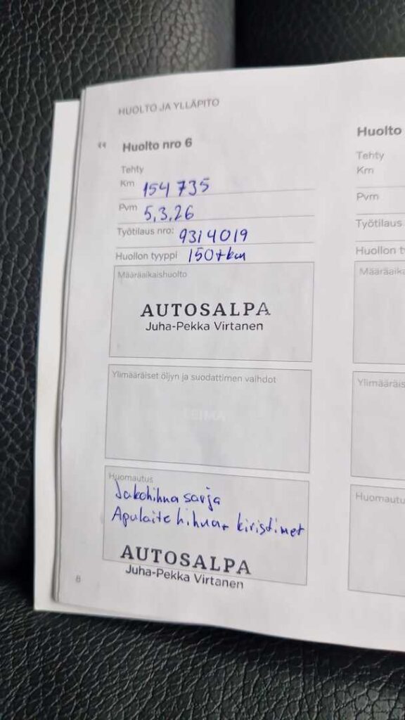 - Viimeisin huolto tehty 154 tkm 3/2026